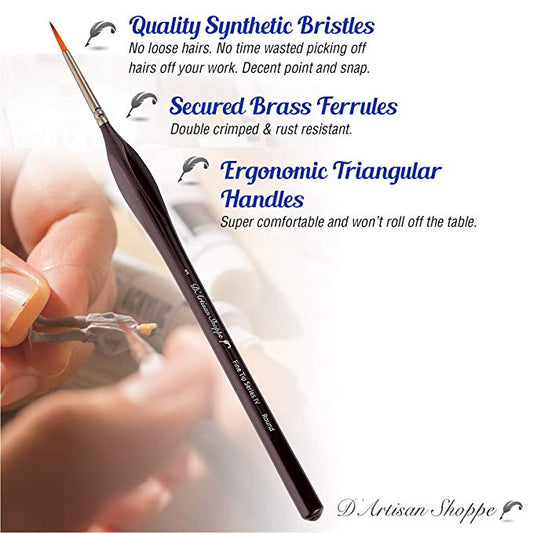 Fine Tip Round 000 (#3/0) Detail Art Paint Brushes - 4pcs/set
