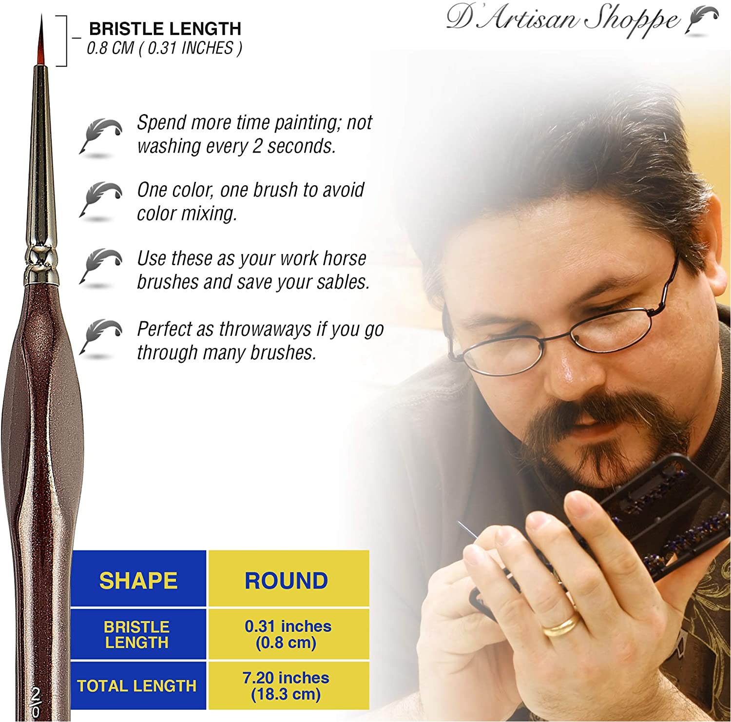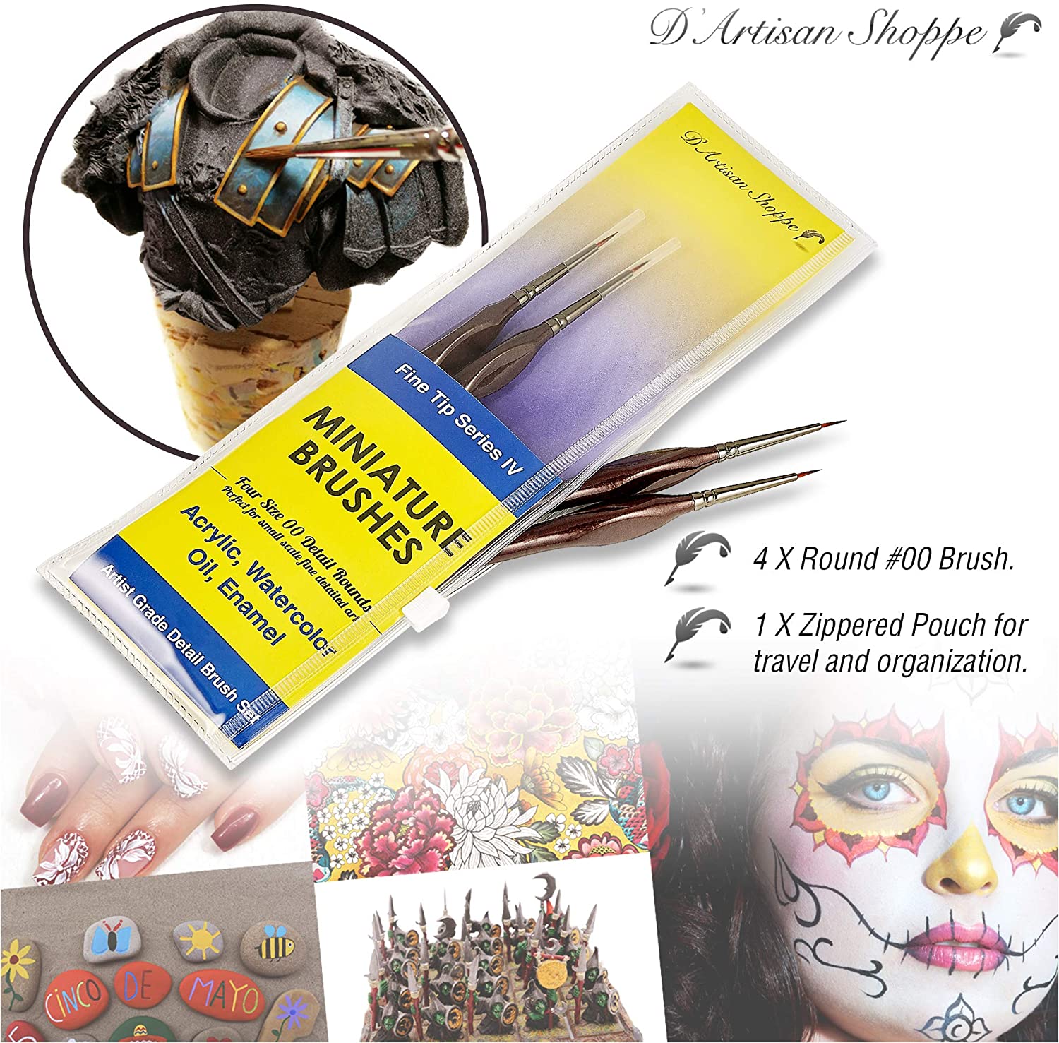 - Protective Plastic Cover Tubes: These miniature paint brushes come with protective tubes to keep them in shape after every use. D'Artisan Shoppe stands by its product and will replace any faulty brushes so order these small detail art brushes today risk free! Makes a wonderful gift idea or Christmas stocking filler for your friends and families who have fun in painting!