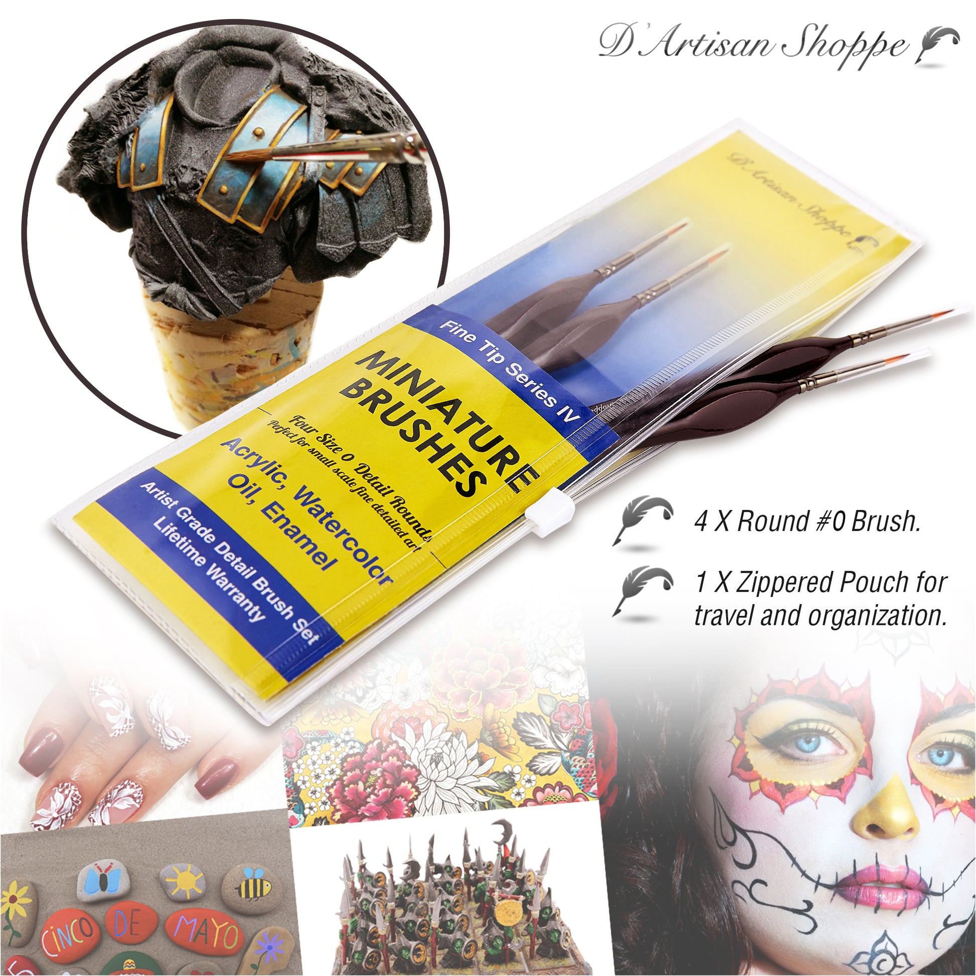 For those expanding their toolkit, we also offer size 0 and 000 round brushes and size 0 and 1 flat brushes in our Fine Tip Series, perfect for completing your miniature painting collection. -