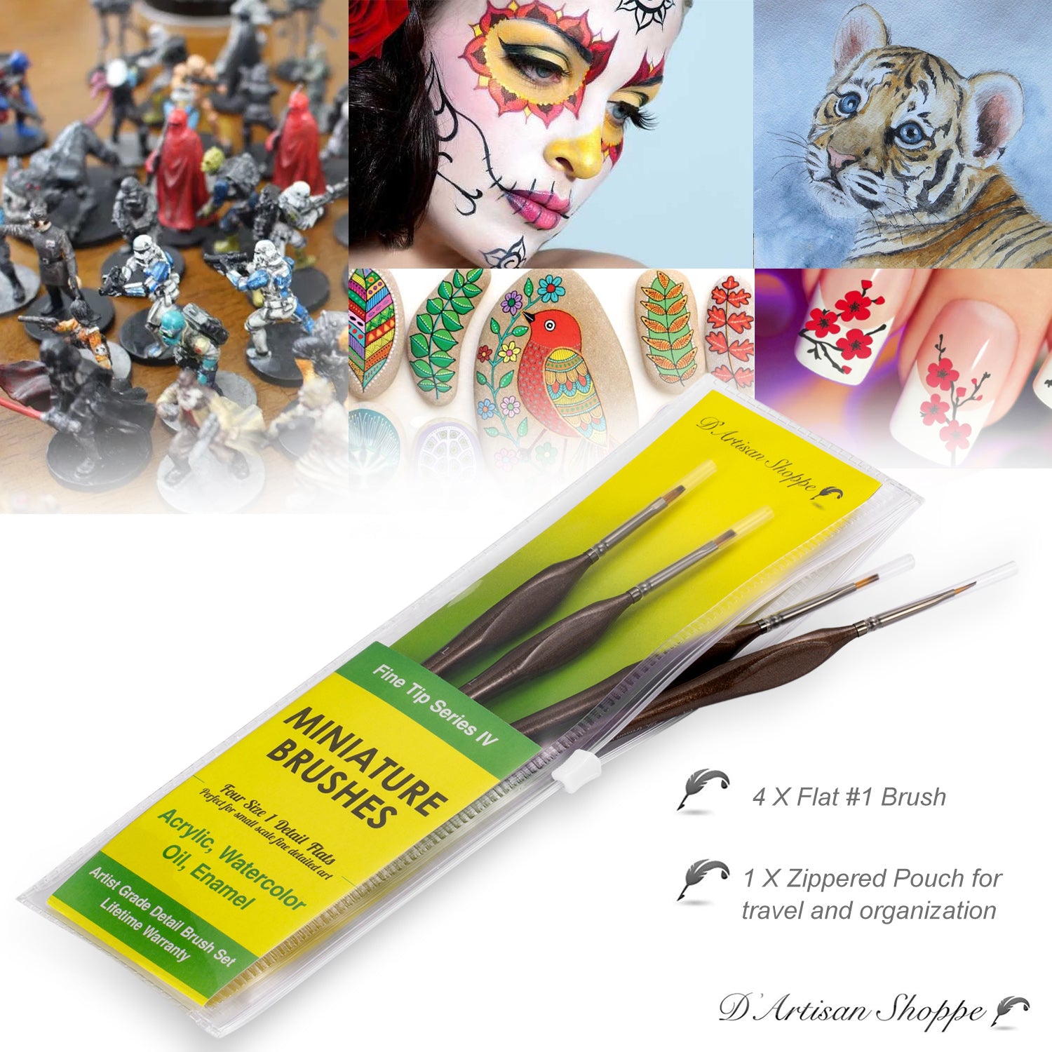 This miniature painting brush set makes a thoughtful gift and includes a free reusable zipper pouch containing four identical size brushes.If you’re looking for a starter set of four Flat #1 synthetic brushes, this set delivers value and precision—no need to purchase costly single brushes or complete sets with sizes you won’t use.