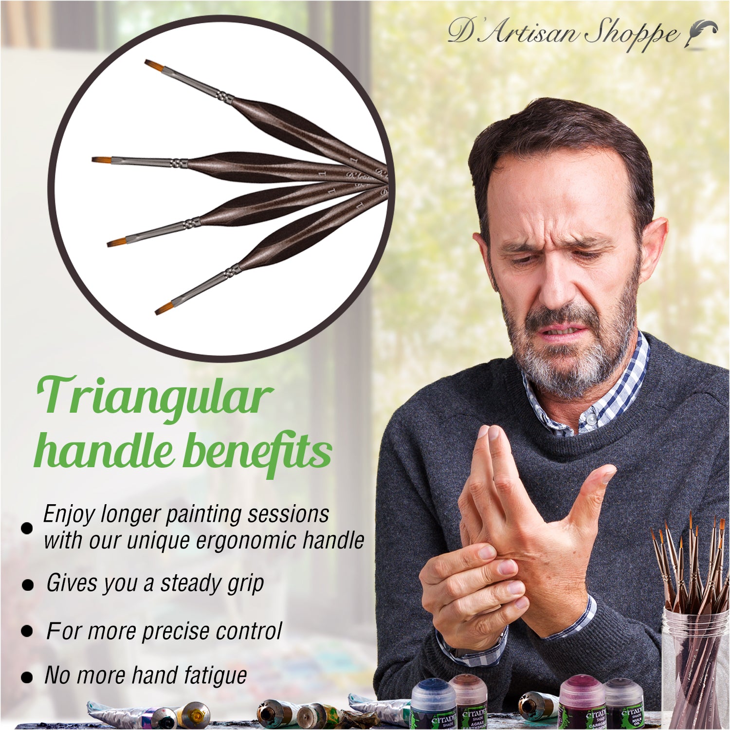 Say goodbye to the hand cramping that comes with thin-handled brushes—paint longer and more comfortably, even when working through large batches of miniatures or scale models.